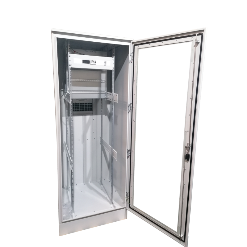 42 HE 80 x 80 mm Innenschrank mit 2000-W-Klimaanlage. Witterungsbeständiger Außenschrank aus hellgrauem Stahlblech mit robuster, korrosionsbeständiger Konstruktion.